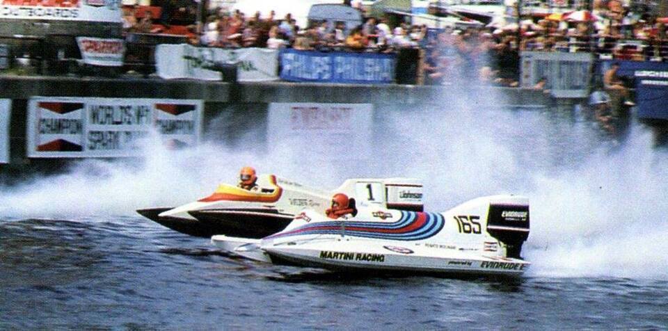 In addition to success in what is now the F1H2O series, Renato earned four world titles in the O-Unlimited series between 1980 and 1983 and five in the ON 200cc class in 1970, 1971, 1973, 1976 and 1980. In addition, he secured a pair of O-850 outboard titles in 1976 and 1979, the outboard O-1500 Corsa Championship title in 1977 and in the inboard Corsa 2000 in 1981. In his heyday in the F1 World Powerboat Championship, Molinari’s boats had Martini branding alongside his late team-mates Bob Spalding and Enrico ‘Chicco’ Vidoli.