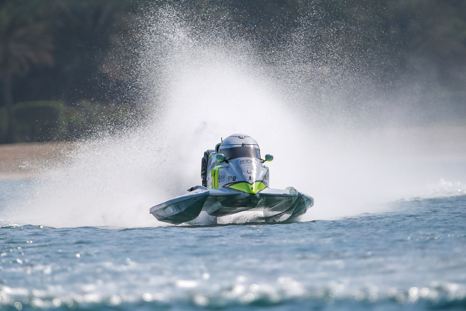 Third quickest in a dramatic session in front of the Abu Dhabi Corniche went to CTIC F1 Shenzhen China’s championship leader Philippe Chiappe, with title challengers Sami Selio and Alex Carella’s title bids both taking a severe blow.