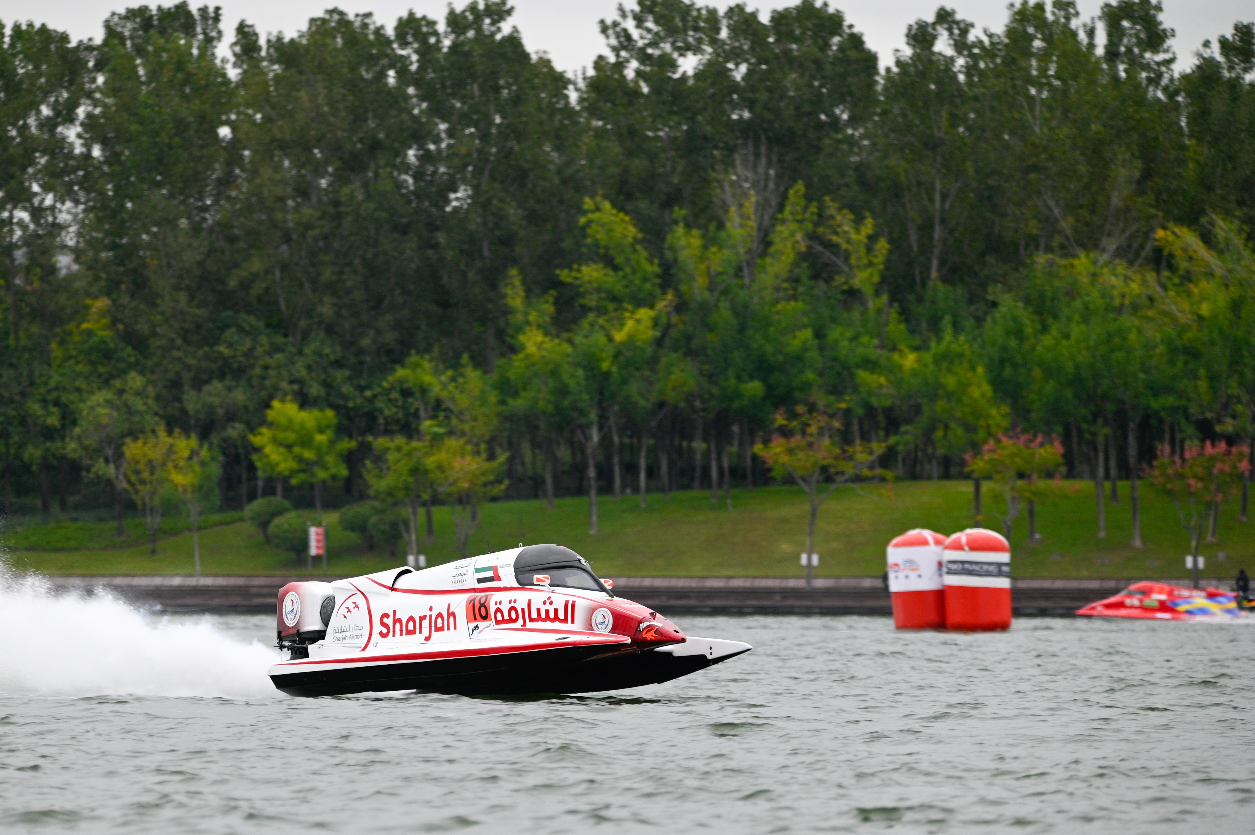 Young Estonian Stefan Arand suffered a battery issue after the second qualifying session but sterling work by the Sharjah Team to replace the battery saw him out on the water in time to post a best lap of 44.401sec. That was sufficient for third place on the start pontoon and that lap also pushed Weckström’s team-mate Shaun Torrente down to fourth.