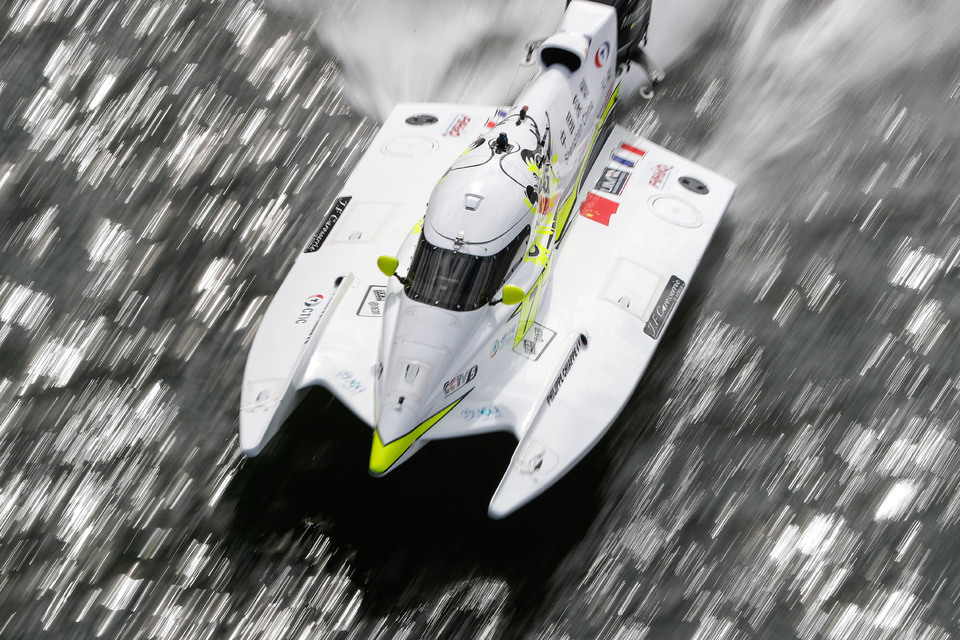The Maverick F1 driver was third to go in the Q3 top six shoot-out and produced the best time of the session on the first of his two runs, securing the pole with a 37.71s lap around the 1.72km circuit in London’s Royal Victoria Dock. “It was a crazy lap and it felt like the boat was half a metre out of the water all the time. It was very tough but a cool lap today.” said Stark after taking his third career pole position. “You just don’t know what will happen in these conditions when you are at the maximum and the boat is flying. Now I hope they will opt for a rolling start tomorrow.”
