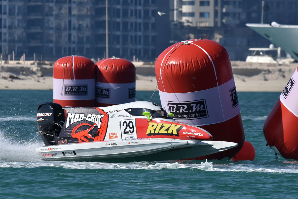 Al Mehairbi’s dramatic exit brought out the yellow flag, with Zandbergen leading the depleted line-up of eight boats around for six laps to take the chequered and his first F4-S win on lap 22.