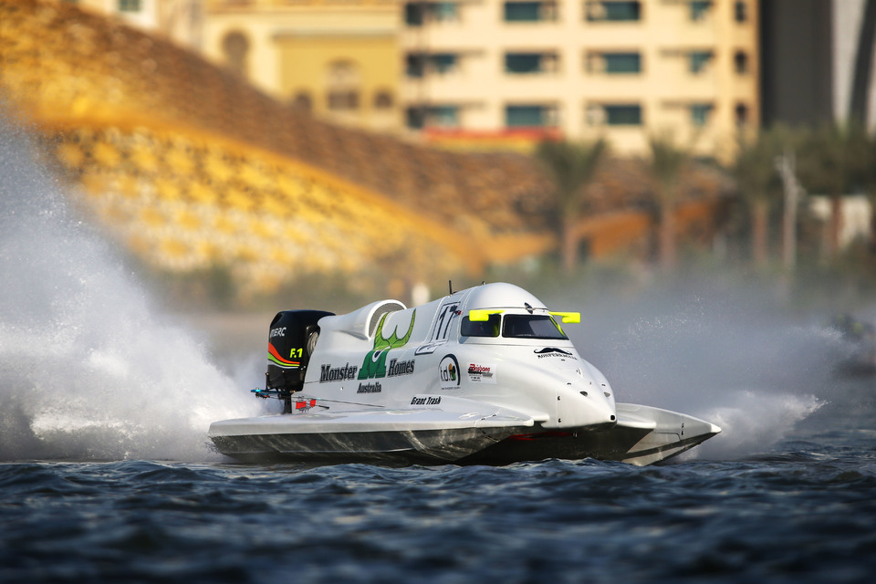 Thursday, 15 December, SHARJAH (UAE): After an eight year gap, the ‘Trask’ name reappeared on the F1H2O time sheets, with Grant Trask following his father and uncle into the higher echelons of the sport, and clearly revelling in it.