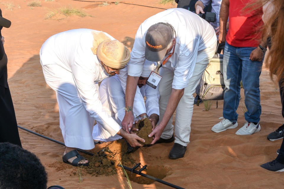 On the day off between the last two rounds of the UIM F1H2O World Championship on Khaled Lagoon, series founder Nicolò di San Germano was joined by members of the media, teams, officials and guests from a Sharjah government delegation to plant trees in the plantation at Al-Mentethr as a way of offsetting some of the carbon footprint that the sport creates.