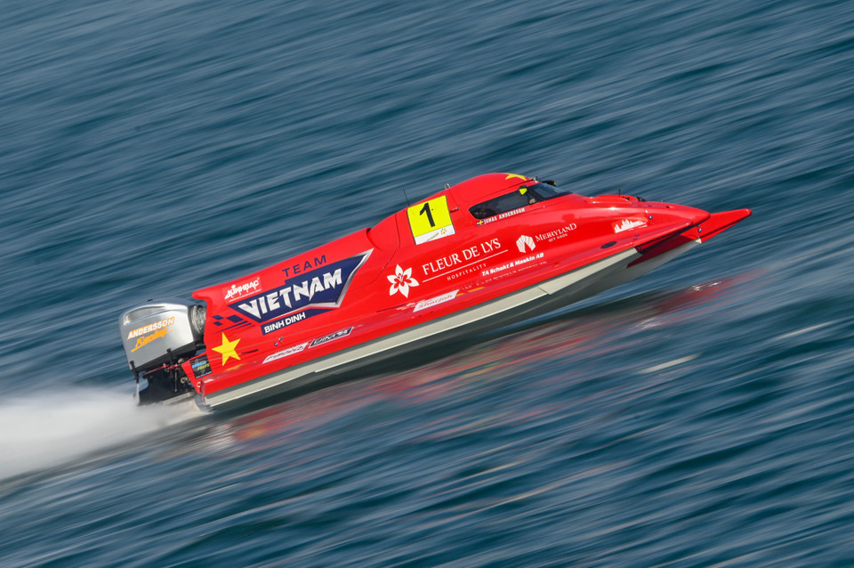 Saturday, December 7: Team Vietnam’s Jonas Andersson took one step closer to retaining his world title with a dominant start-to-finish victory in the first of the two Sprint races at the Road to Sharjah-Grand Prix of Sharjah on Khalid Lagoon on Saturday afternoon.