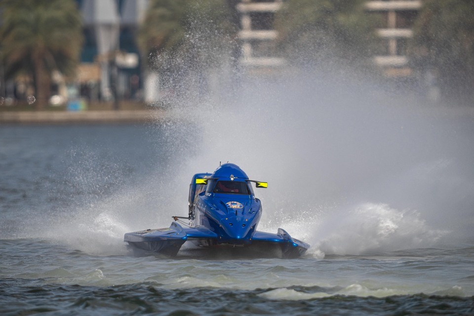 Eight of the 20 racers faced elimination in the opening 20-minute qualifying session. Team Abu Dhabi’s Erik Stark opted to race his older DAC with full support from his team and the Sharjah Team’s Stefan Arand overcame delamination issues on his new Sharjah-built boat that were discovered when equipment arrived from Jeddah.